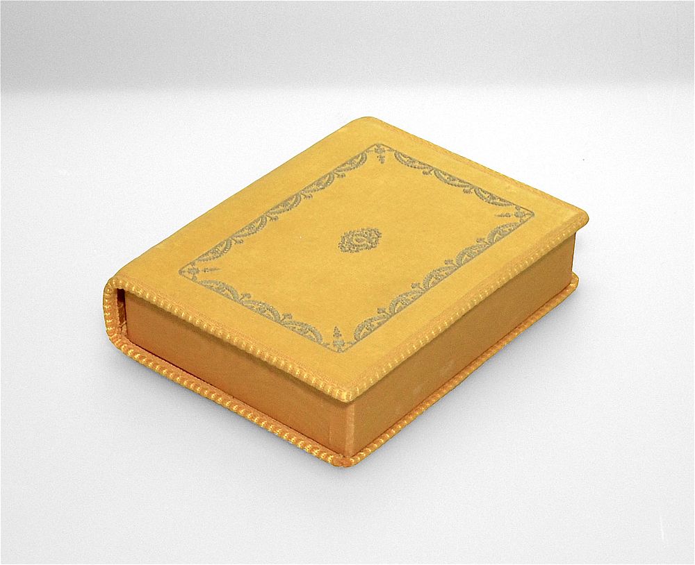 This card game set is contained in a box modelled as a gold velvet covered book.