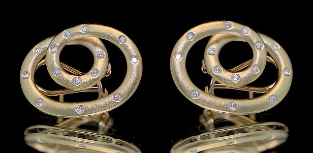 Each earring is made of domed satin finish 18ct yellow gold wire in the shape of an open swirling spiral.