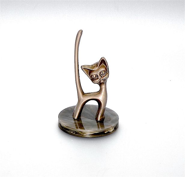 Another 1960s Seba object but this time a very cute white metal cat on a gray/green phenolic circular base. Originally designed for use as a ring tray it makes a great decorative object particularly if paired with the donkey that is also on the site.